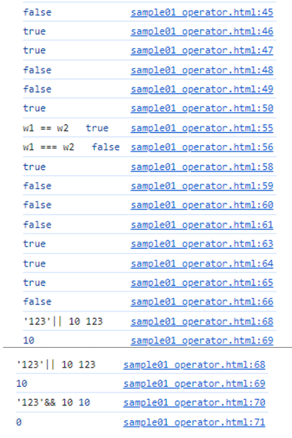 또한 최종적으로 반환되는 값은 true/false값이 아닌 좌측 또는 우측 피연산 자의 최종 평가값이다.