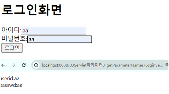 폼데이터⇒> request.getParameter, request.getParametweValues 만