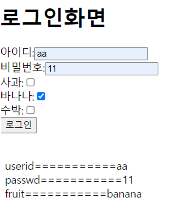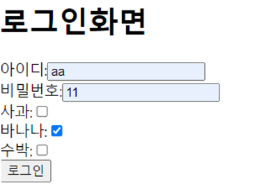 바나나:<input type="checkbox" name="fruit" value="banana"><br>