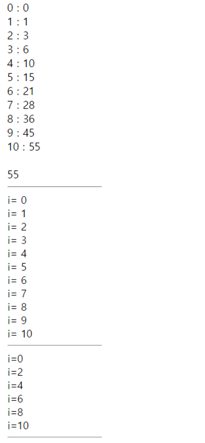 <%= i %> : <% out.print(sum2); %> <br>