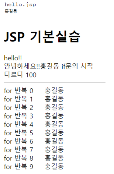 for 반복 <%=i %>     <% out.print("홍길동");%> <br>