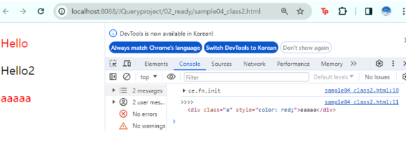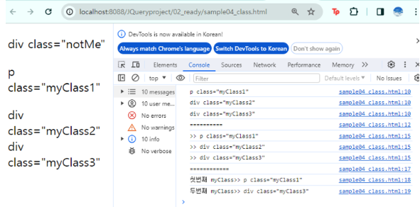 console.log("첫번째 myClass>>", $(".myClass")[0].innerText);