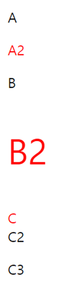 $("div").next().css("color","red"); //div의 next