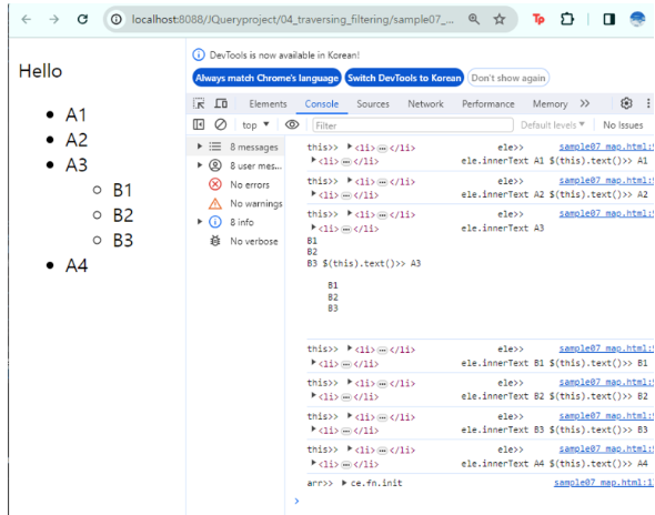 var arr= $("li").map(function(idx,ele){