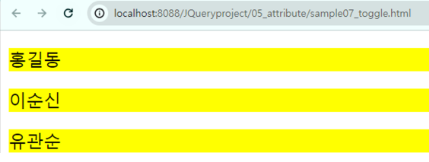 클릭시 색상바뀜 노란색으로