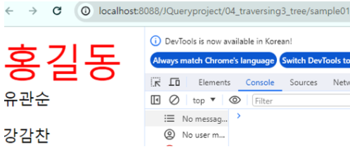 클릭시 홍갈동(자손) 없어짐