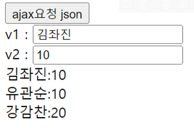 v1: $("#v1").val(), //data전송{va:'홍길동',v2:'10'}