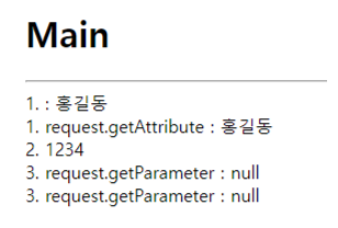 1. request.getAttribute : <%= request.getAttribute("userid") %><br>