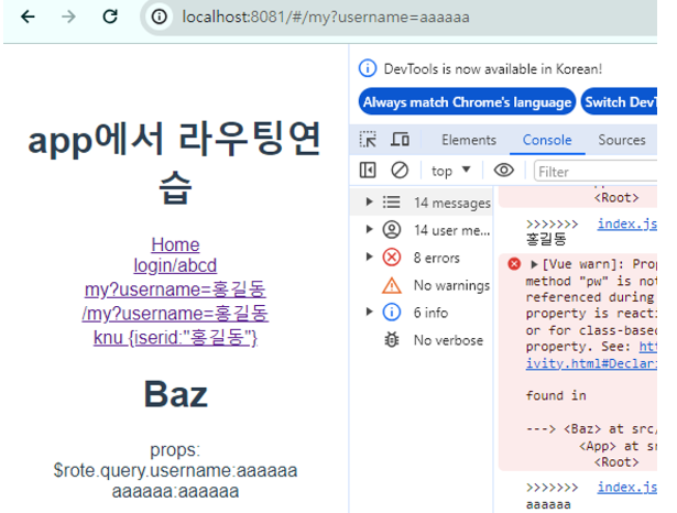 <router-link to="/my?username=홍길동">/my?username=홍길동</router-link><br>