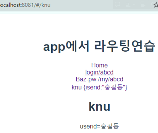 <router-link to="/knu">knu {iserid:"홍길동"}</router-link><br>