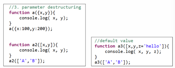 호출 받는 함수의 파라미터를 객체 분해 할당 형태로 작성하면 함수에서 분해된 값을 사용할 수 있다.