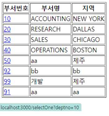 htmlTable += `<tr><td><a href="/selectOne?deptno=${deptNo}">${deptNo}</a></td><td>${row[1]}</td><td>${row[2]}</td></tr>`;