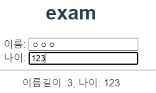 이름길이 :{{ username.length }}, 나이: {{ age }}