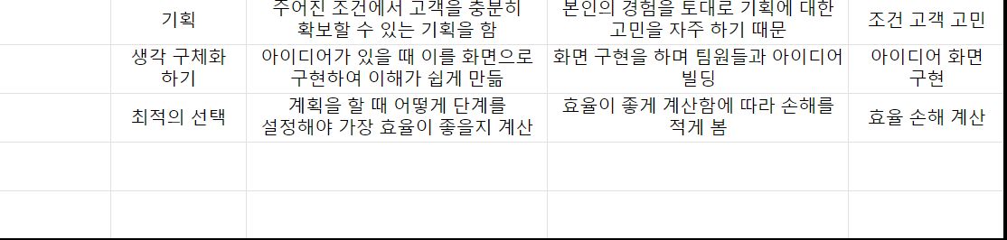 나를 비롯한 팀원들과 아이디어를 뽑아냈음.